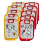 De trainingselektroden, die je vervolgens aanbrengt op de oefenpop, hechten door middel van een kleefmiddel. Hierdoor zijn ze ongeveer 50 keer herbruikbaar op de pop. De elektroden bevatten een sensor die weet wanneer ze op de pop worden gedrukt. Op die manier wordt het ingestelde scenario automatisch vervolgd.